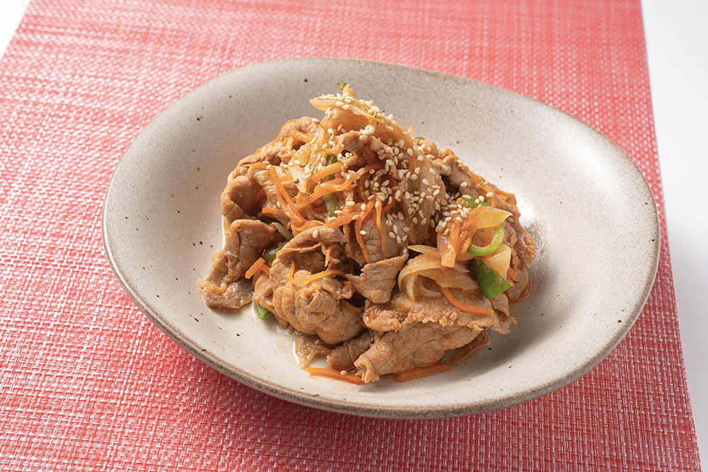 新玉たっぷり豚肉のレモン風味生姜焼き