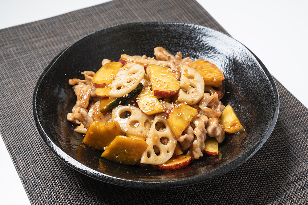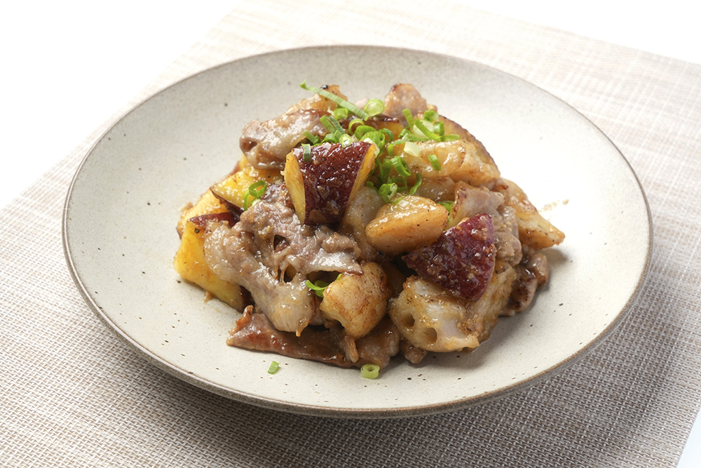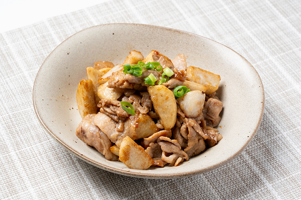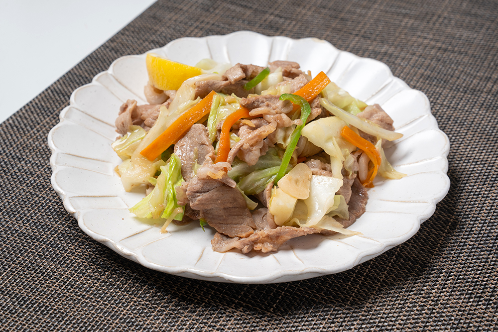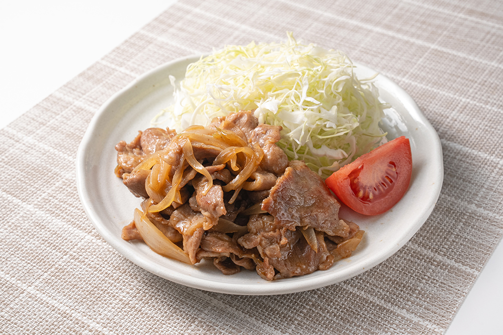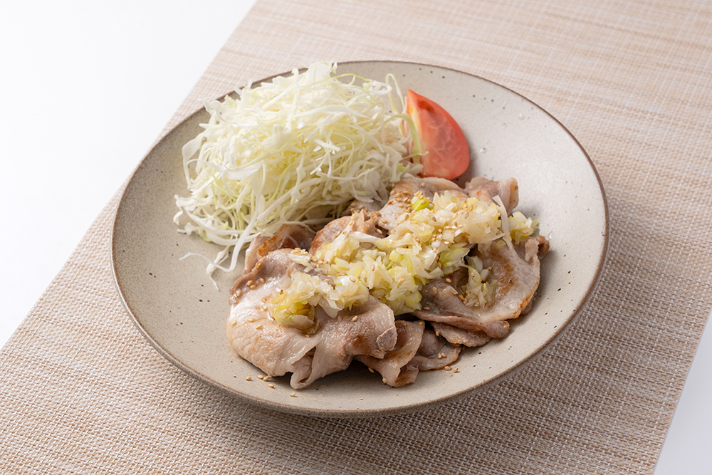新玉たっぷり豚肉のレモン風味生姜焼き