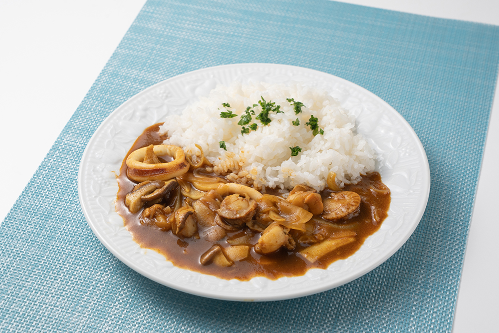 玉ねぎたっぷりいかとほたてのシーフードカレー